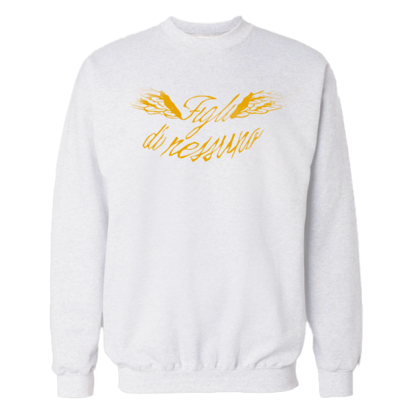 Felpa Fabrizio Moro grigia 100% cotone con stampa oro "FIGLI DI NESSUNO".
