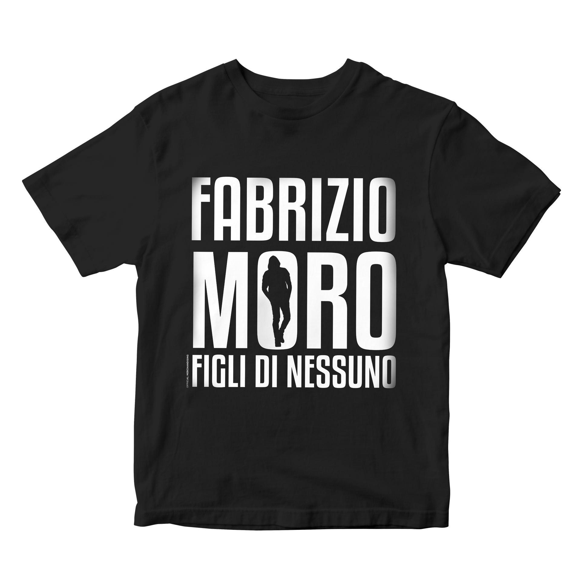T-Shirt Fabrizio Moro nera 100% cotone con stampa bianca "FIGLI DI NESSUNO".