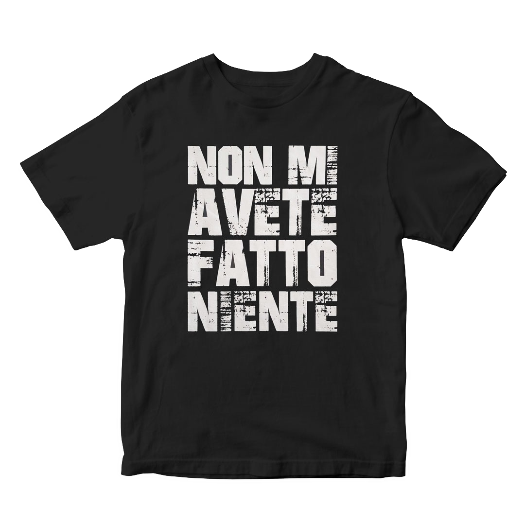 T-Shirt Fabrizio Moro nera 100% cotone con stampa bianca "NON MI AVETE FATTO NIENTE".