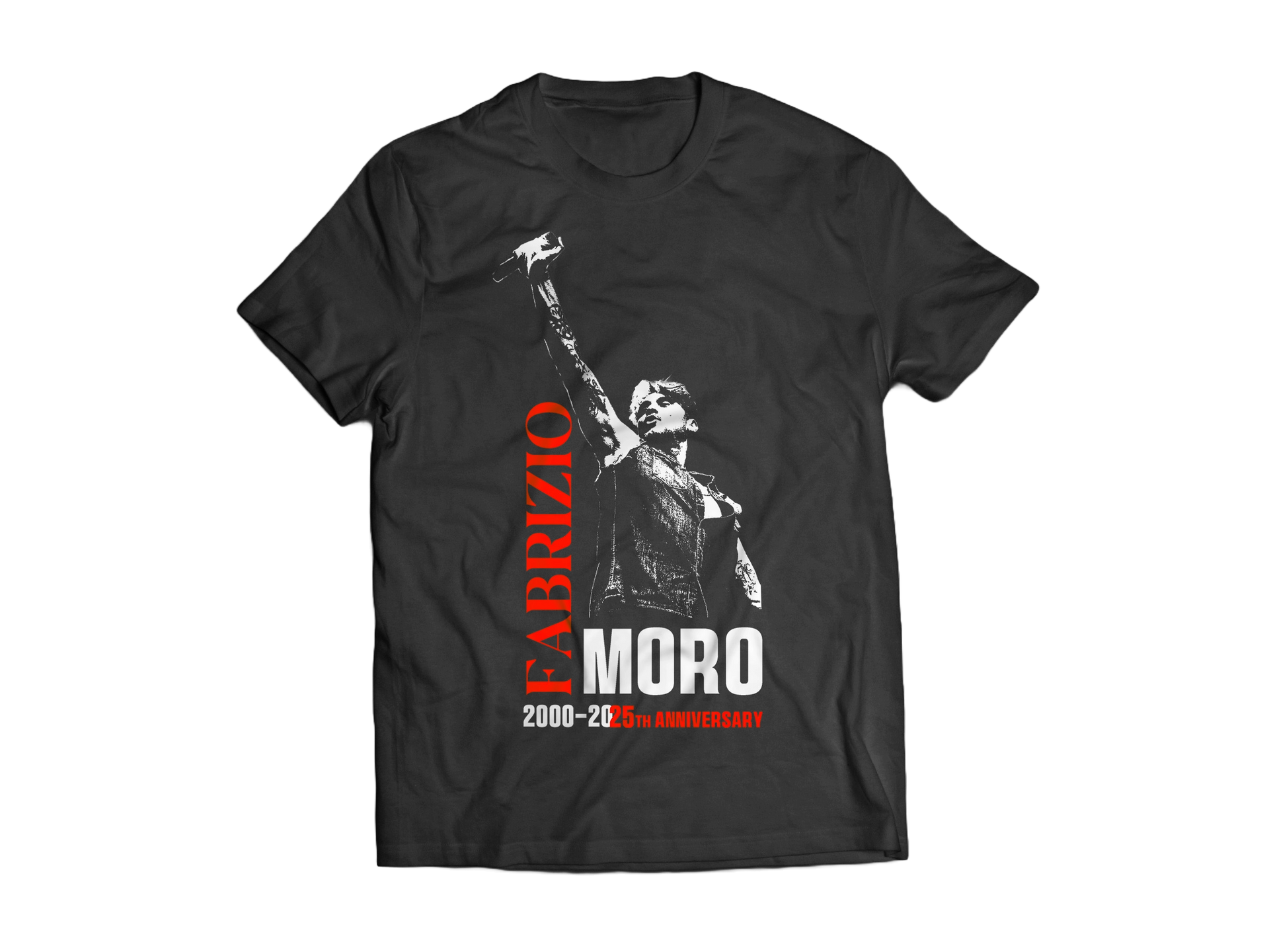 T-Shirt Fabrizio Moro nera 100% cotone con stampa "TOUR 25th ANNIVERSARY".